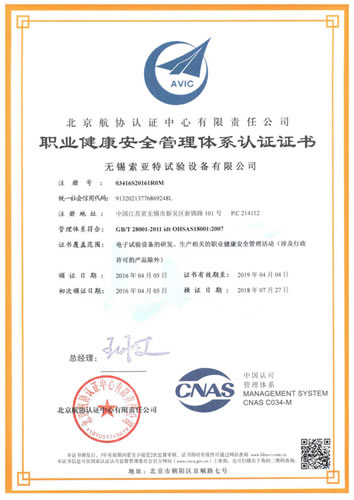 職業(yè)健康安全管理體系證書(shū)(GB/T28001-2011)